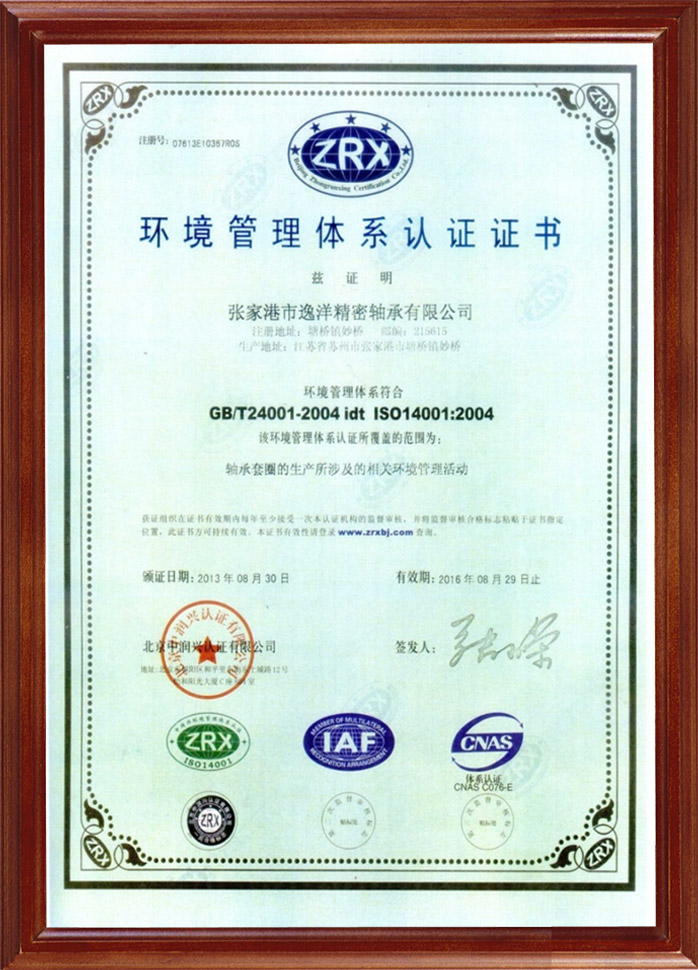 環(huán)境管理體系認證證書